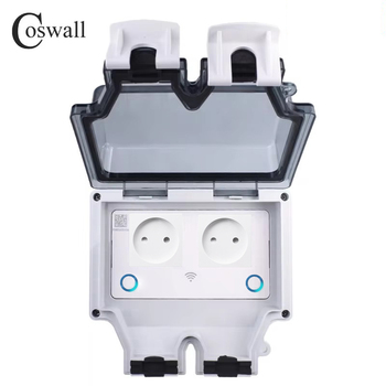 Coswall Zigbee 야외 IP55 방수 2 갱 벽 스위치 욕실 물 튀김 방지 스마트 소켓